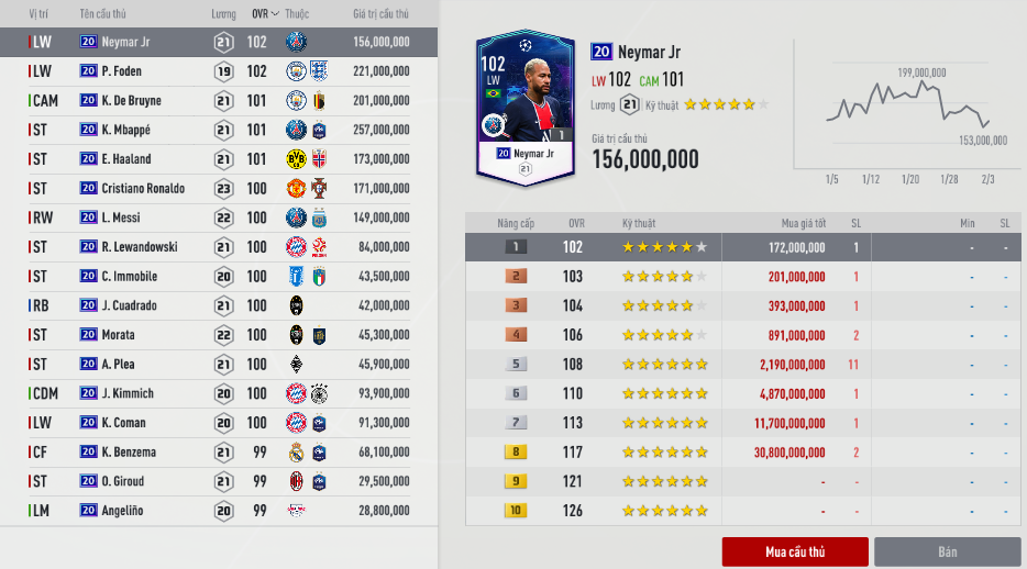Ngày 16/2 tới đây Champions League sẽ trở lại với 16 đội bóng mạnh nhất châu âu hiện tại. Và đó cũng chính là mùa giải 21UCL mà nhiều người mong đợi. Đây là thẻ luôn được Nexon đầu tư một cách kỹ lưỡng và có thể điều chỉnh được chỉ số sau mỗi vòng đấu.