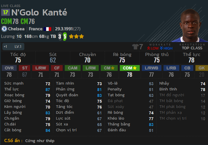 THỊ TRƯỜNG CHUYỂN NHƯỢNG: Từng là một cái tên được khao khát của rất nhiều team nhà nghèo nhưng hiện tại Kanté ss17+1 chỉ có giá ~600k BP. Một cái giá rẻ không tưởng với một cầu thủ chất lượng như vậy.