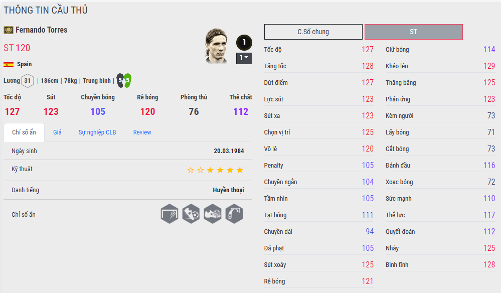 Tất nhiên chỉ số của cầu thủ sẽ có thể khác nhưng phần đông người chơi sẽ quan tâm nhiều nhất chính là hai chân 5/5 của cả Torres và Cantona mà thôi.