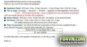 Thời gian người chơi thử nghiệm sẽ là 4/3/2019 - 8/3/2019