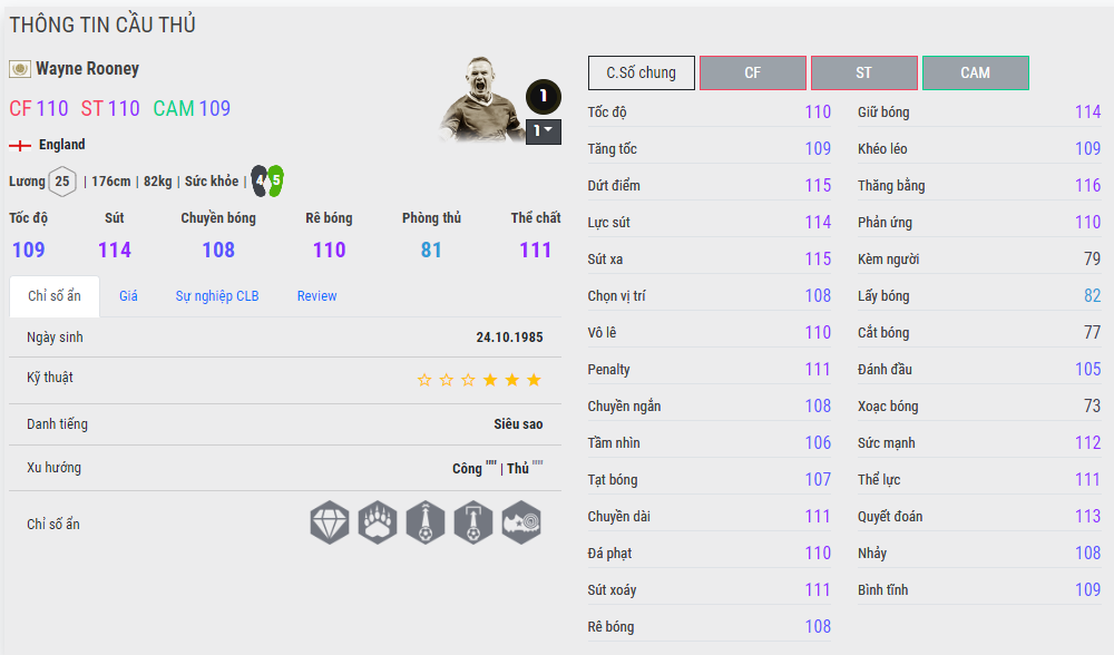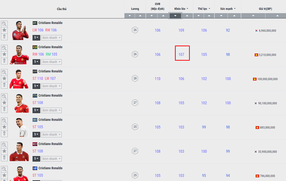 Tất nhiên cách tạo chuyển động không phải hoàn toàn 100% dựa vào khéo léo, nó chỉ quyết định một phần thôi. Với Ovr 106 mà chỉ số khéo léo của Ronaldo BTB đã là 107 ( rất cao đấy chứ ).
