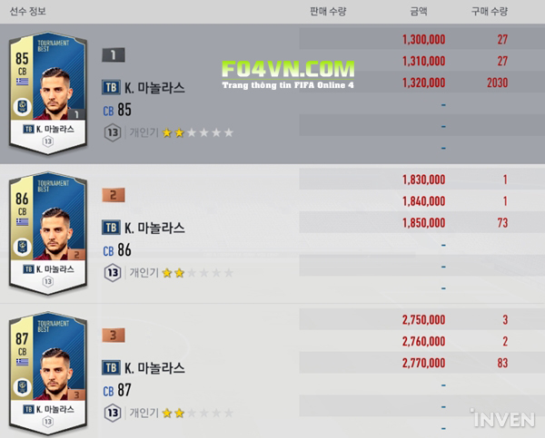 Các thẻ mùa giải TB được thêm trong khoảng tháng 8. Ngay khi phát hành,Manolas đã nhận được sự quan tâm rất nhiều trong vai trò trở thành bạn cặp với Maldini và cả 2 trở nên khá ăn ý cả về mặt phòng ngự lẫn chất lượng riêng từ mỗi người. Cùng với đó những cái tên như Ronaldo, Messi hay Dybala ... có chất lượng tốt và rất đáng dùng.