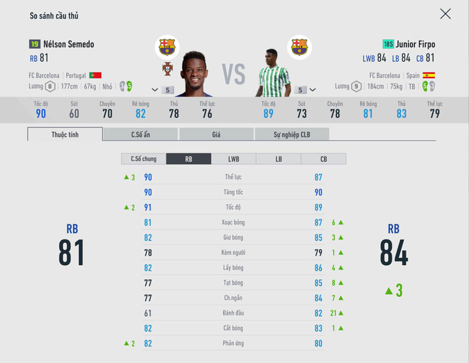 Và giờ đây, người ta đào lại vấn đề tại sao Barca lại bán đi Semedo dù họ không có lựa chọn nào khác ở hành lang cánh phải trong kỳ chuyển nhượng mùa hè năm ngoái. Đối với Fo4 thì các mùa thẻ Live phản ánh khá chuẩn phong độ của cầu thủ đó ngoài đời, bởi nó dựa vào các thông số của chính cầu thủ đó thể hiện trên sân.
