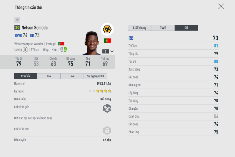 Sau khi bị bán sang Wolves với giá 40 triệu Euro. Chỉ số của Semedo tiếp tục giảm và hiện nay thì gần như rất ít người chọn anh trong xây dựng đội hình, trong khi đó người đồng đội tại tuyển quốc gia là Joao Cancelo lại đang là top các hậu vệ cánh trong game