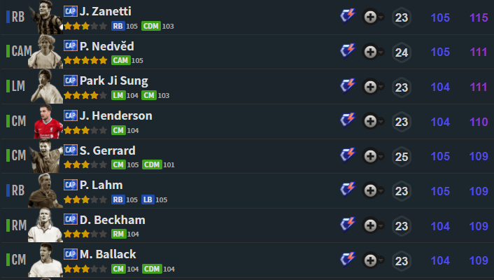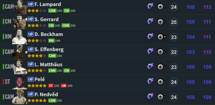 Hai chân đại bác tầm xa Lampard và Gerrard được Nexon ưu ái cho đứng top 1 vs 2. Beckham gây bất ngờ khi xuất hiện ở vị trí số 3. Với những fan hâm mộ của Chelsea và Liverpool thi đây là tin mừng khi mà hai huyền thoại của họ thực sự có mùa giải có sức bắn phá khủng