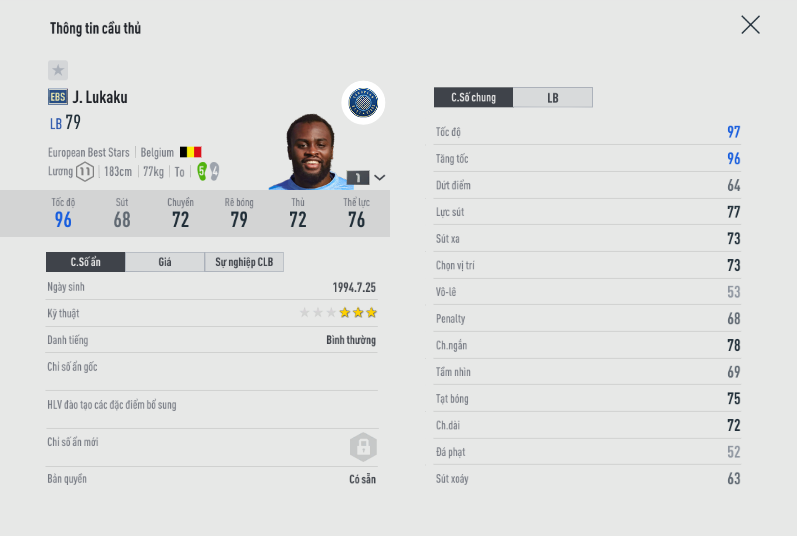 Nếu bạn từng nhớ về hậu vệ trái này trong những thuở ban đầu khi Fo4 ra mắt thì có lẽ bạn sẽ được bản nâng cấp xứng đáng đấy. Thừa sức khỏe, vào bóng rát và đặc biệt lương rất rẻ, đây sẽ là hàng tuyển trong tương lai không xa ở vị trí cánh trái. Điểm yếu của Lukaku là khả năng tấn công không ấn tượng.