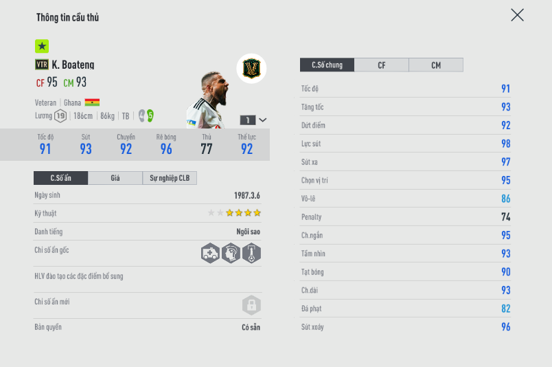 Hai anh em nhà Boateng đều có tài năng xuất chúng. Tuy không nổi bật bằng người em của mình ở trong game. Nhưng Kevin vẫn có đất diễn riêng của mình. Là số ít các tiền vệ có thể hình cùng lối chơi cục súc nhưng không thiếu phần tinh tế. Chỉ số ẩn sút xa là một điểm mạnh của anh chàng này, với lực chân cực mạnh