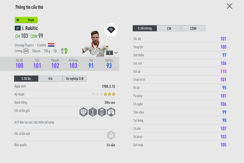 So với Boateng thì Rakitic thậm chí còn có độ hiệu quả trong GLXH cao hơn, khi cầu thủ này có lối chơi tinh tế cùng khả năng chuyền bóng tốt hơn nhiều. Với khả năng bắn phá cực mạnh, Rakitic sẽ là một lựa chọn cực tốt nếu bạn muốn xây dựng một team Barca để đá GLXH chẳng hạn. Tất nhiên tiền vệ người Croatia có thể đá tốt với mọi team mà bạn yêu cầu.