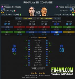 Cannavaro mặc dù thấp lùn những trong game anh lọt vào top 20 cầu thủ được an tâm tin dùng nhất trong xếp hạng, Nesta dù không được như vậy nhưng đừng quên anh cũng một cái tên top trung vệ của mùa giải TT. Không nhanh như chỉ số nhưng lại mạnh trong cản phá, điều mà cặp đôi này mang lại nhưng pha hất tung đối phương lên khỏi mặt đất. Hay những tình huống bọc lót nhau cực kỳ ăn ý. Điểm yếu nhất của cặp đôi này là bóng bổng thiếu sự ổn định.
