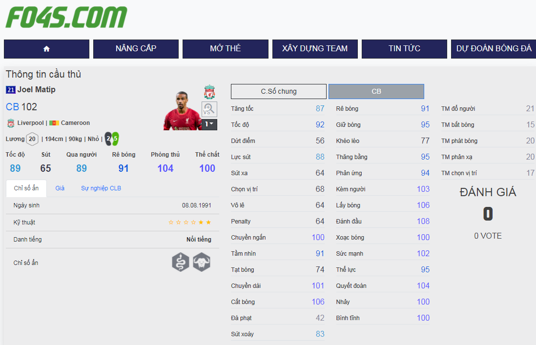 Tra cứu chỉ số mùa 21UCL tại đây : https://fo4s.com/