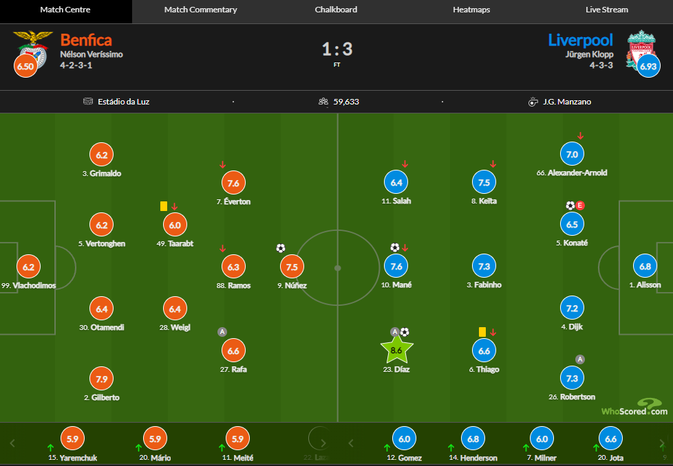 Về phía CLB Benfica dù thua tuy nhiên một vài cá nhân đã có màn trình diễn rất tốt như :