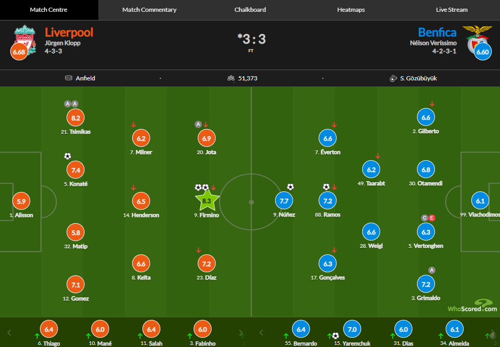 Firmino : 8,3 ( tuy nhiên chỉ đá lượt về )