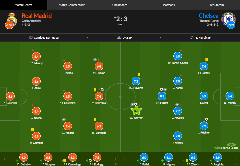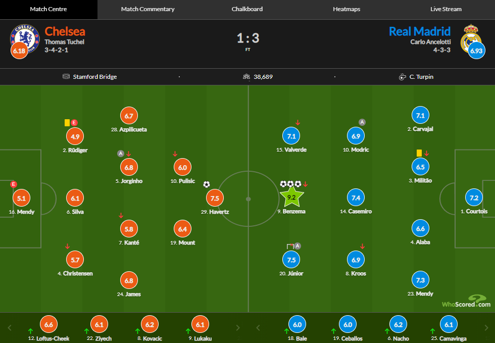 Với màn trình diễn quật cường của Chelsea khi bị dồn vào chân tường, các cầu thủ Chelsea đã có những điểm số cực kỳ ấn tượng, tuy nhiên lượt đi họ để thua 1-3 trước Real nên có lẽ không có nhiều cái tên được tăng chỉ số