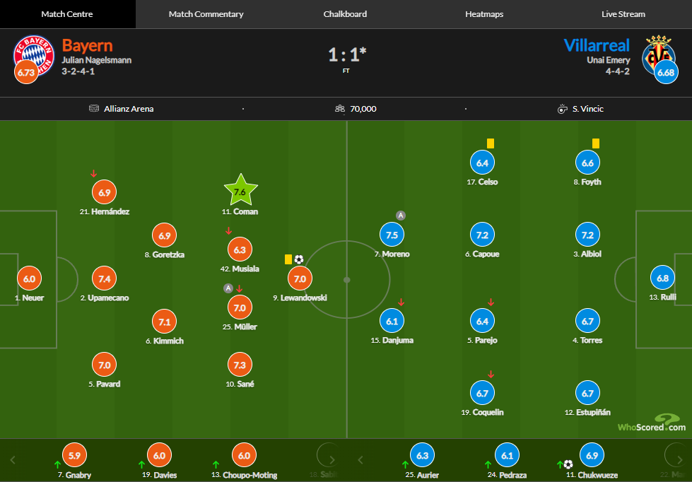 Bên phía Bayern Munich cũng đã chơi rất tốt tuy nhiên họ đã thua trước một hàng thủ của Villarreal được tổ chức cực tốt