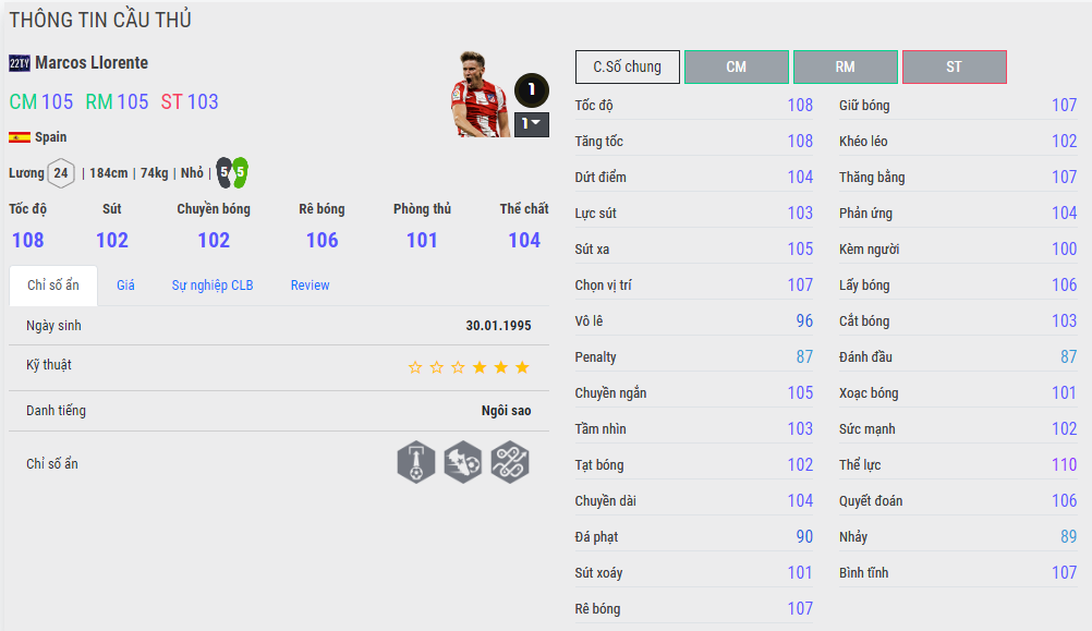 Marcos Llorentte chắc chắn là đề xuất số 1 bởi cầu thủ này có bộ chỉ số gần như tuyệt vời cho vị trí quan trọng này. Còn gì tuyệt vời hơn khi bạn có được một cầu thủ CDM có hai chân 5.5 và còn có cả ma tốc độ. Nếu Llorente cao thêm vào cm nữa có lẽ anh sẽ được xếp ngang hàng với các cầu thủ Gullit, Ballack ở trong game. Tuy nhiên thể hình 1m84 nhưng bù lại khả năng chơi áp sát cực rát của anh này. Các mùa giải đề xuất là 22TY, 20UCL