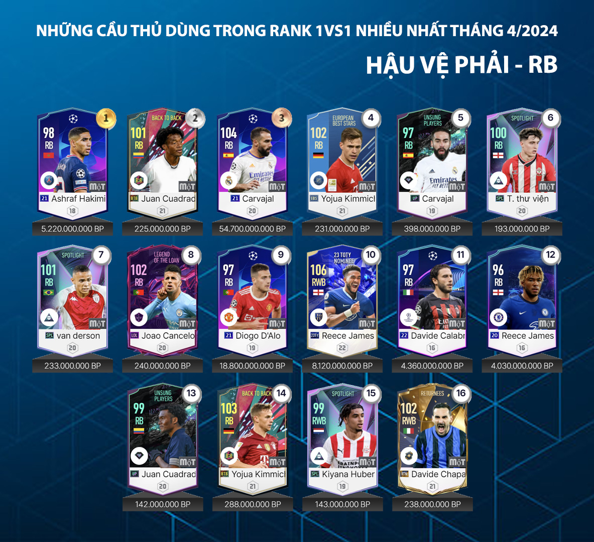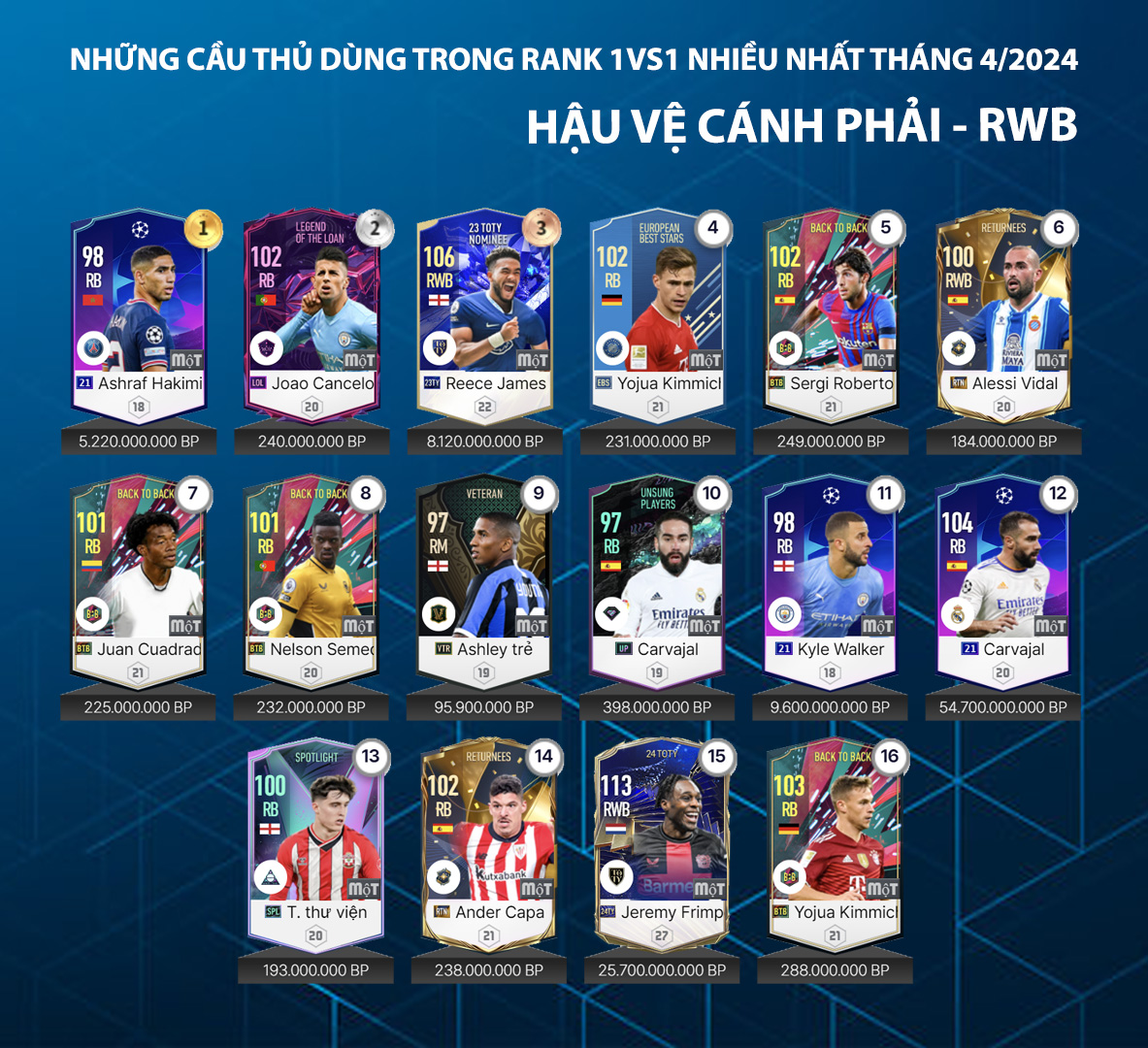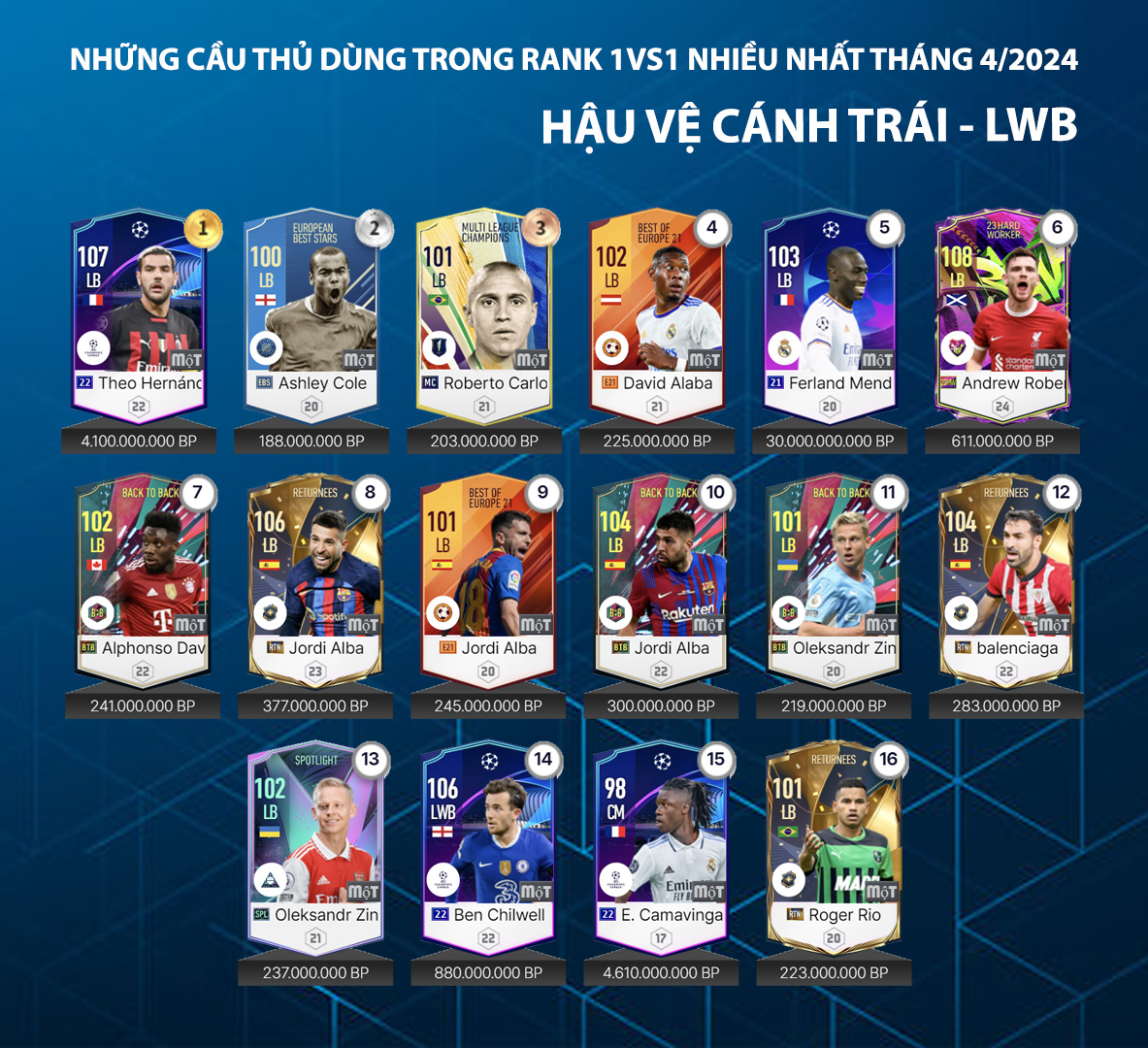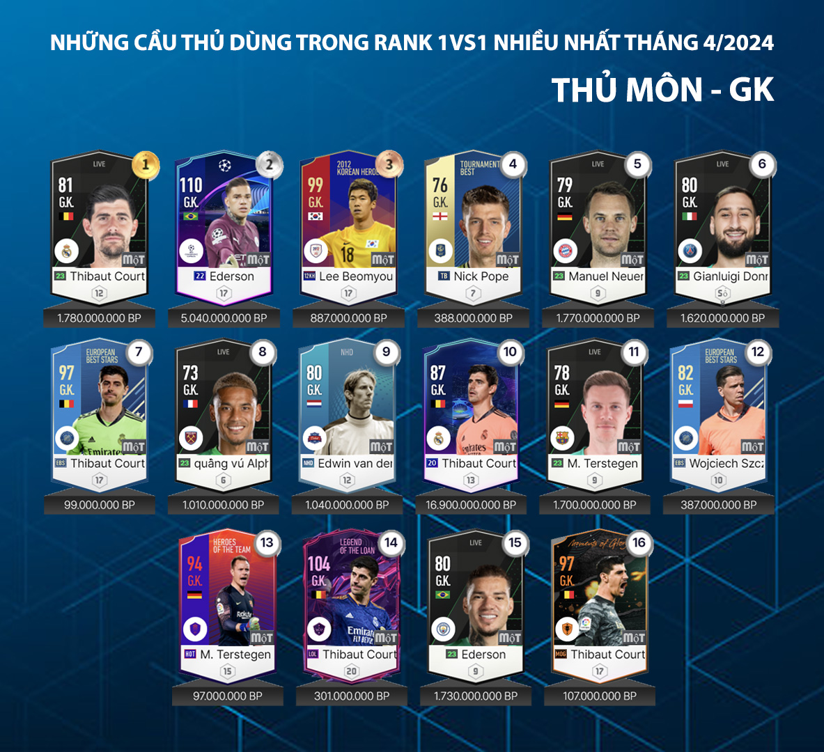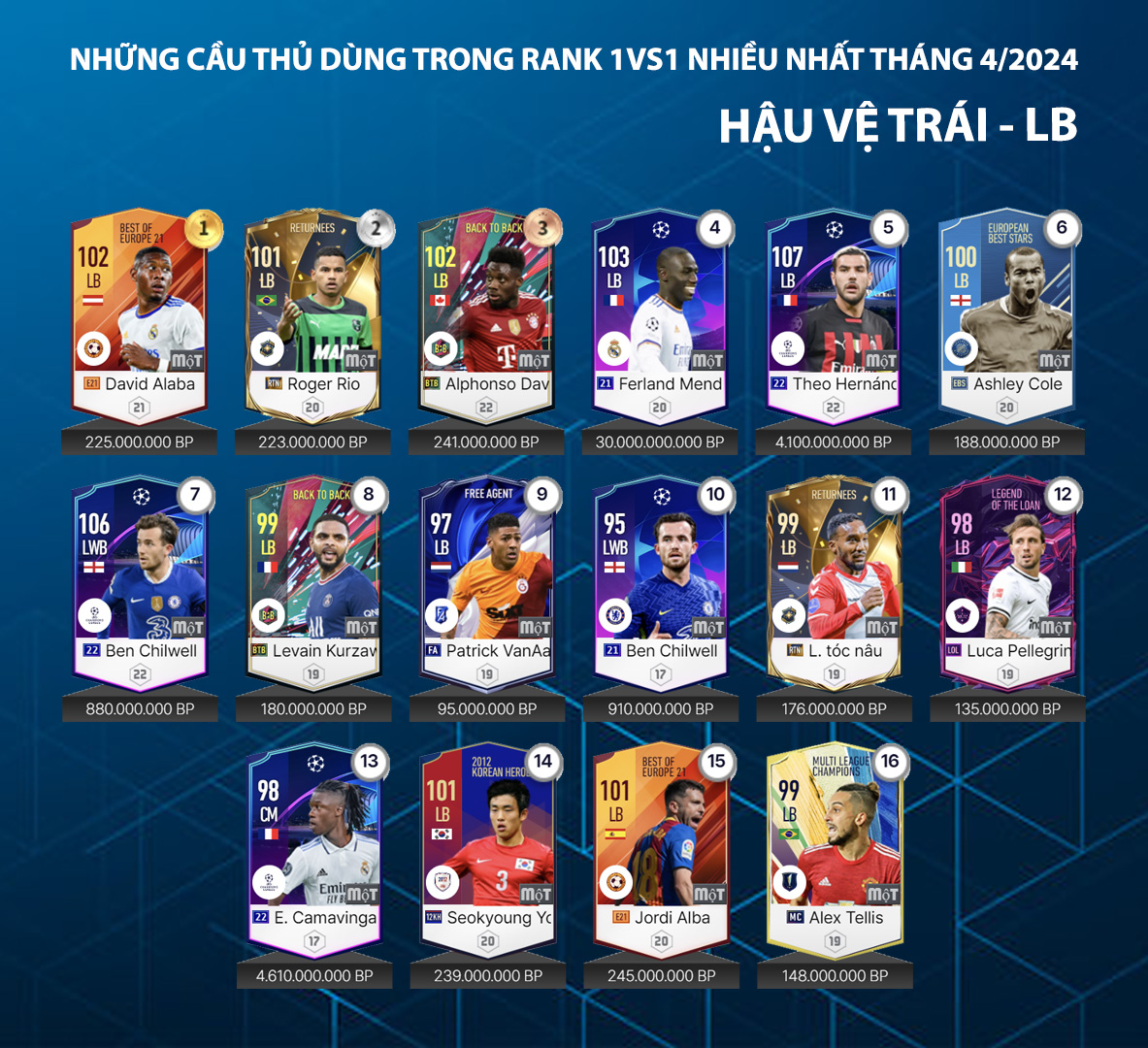 Danh sách dưới đây được thống kê từ máy chủ về những cái tên được sử dụng nhiều nhất trong tháng qua của những game thủ rank cao tại máy chủ xếp hạng. Đây được xem là một trong những nội dung tham khảo đáng quan tâm và care1997.com.tw hôm nay gửi tới cho các bạn danh sách những hậu vệ và thủ môn được sử dụng nhiều nhất trong tháng 4.