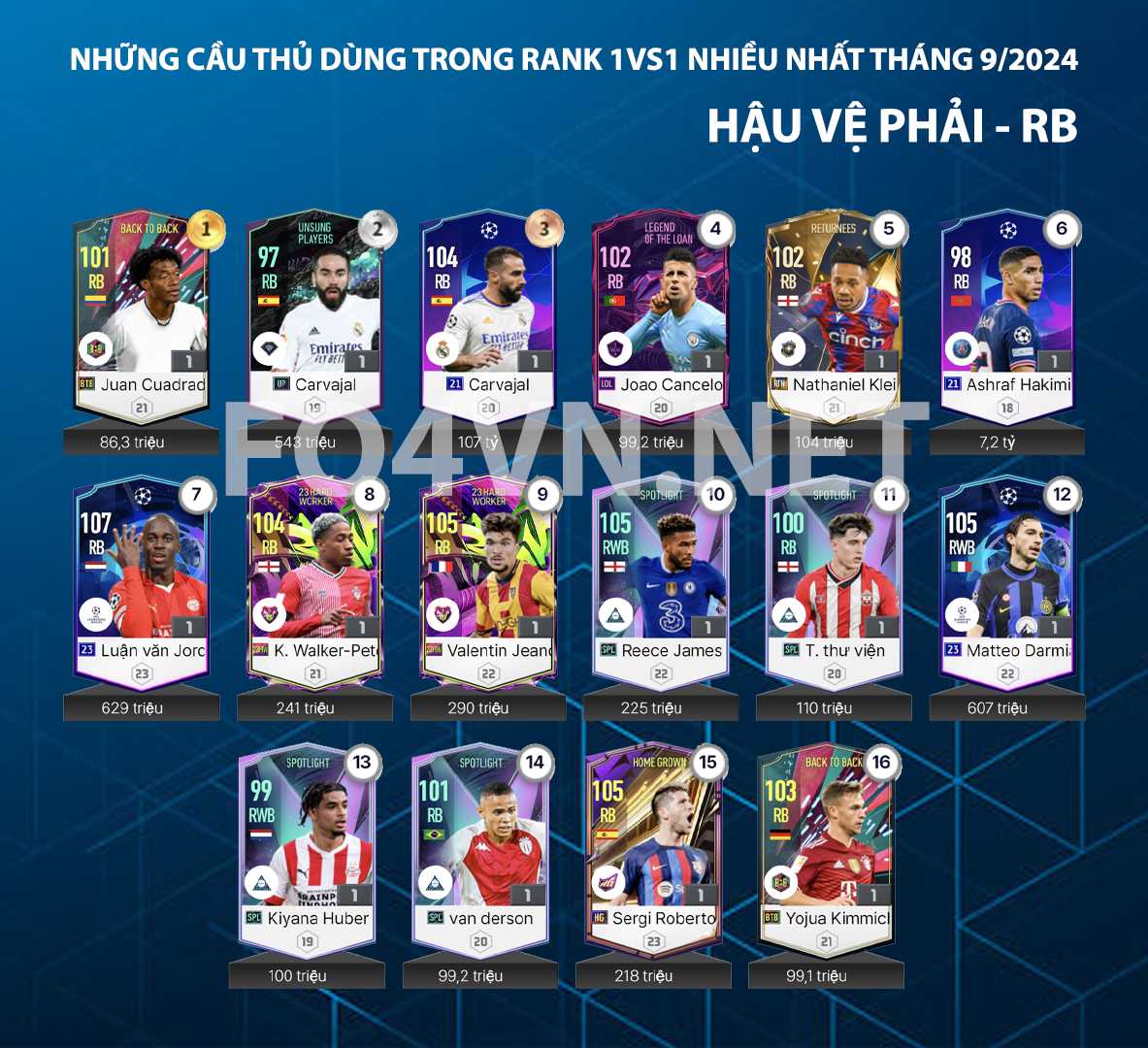 Điều này khiến các hậu vệ phải tham gia trực tiếp vào quá trình phòng ngự nhiều hơn. Do đó, cả trung vệ lẫn hậu vệ biên đều thu hút sự quan tâm lớn. Trong tháng 6 vừa qua, nhiều cầu thủ chơi ở vị trí hậu vệ đã duy trì phong độ ấn tượng và mang lại hiệu suất thi đấu cao cho đội bóng của mình.