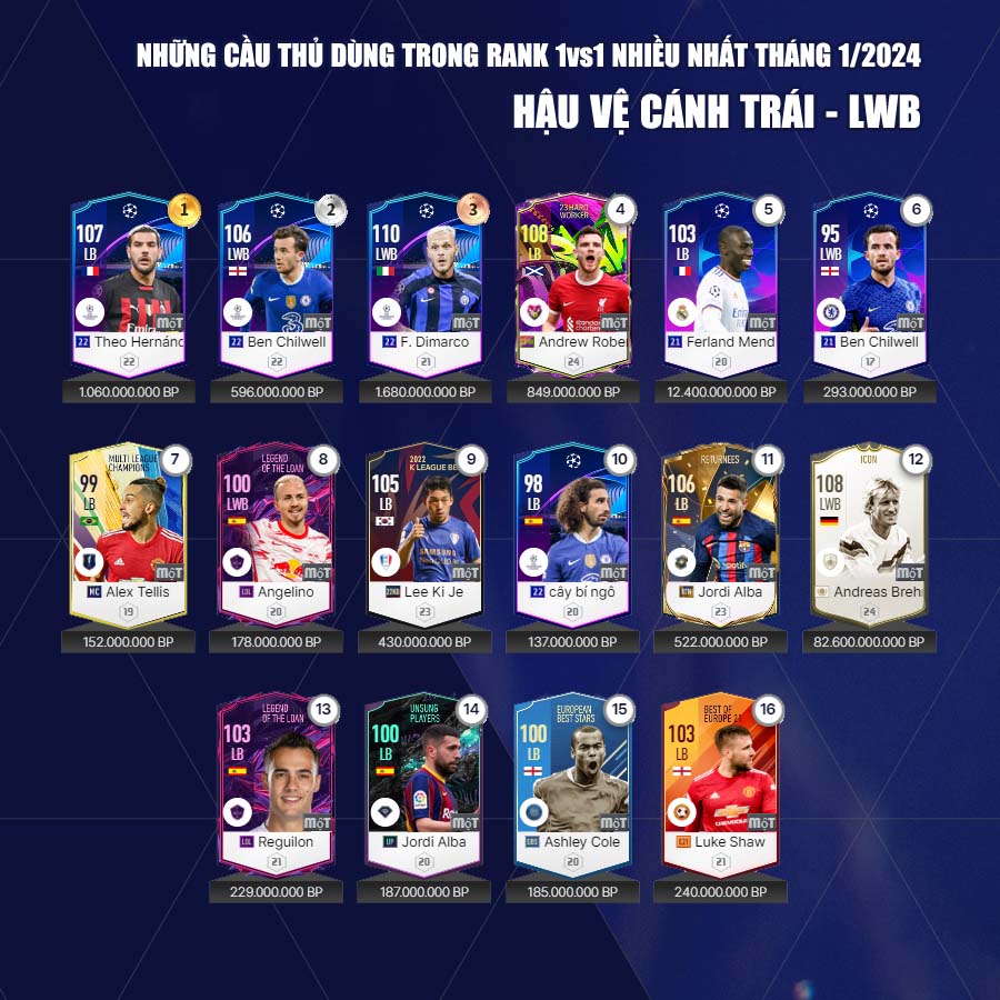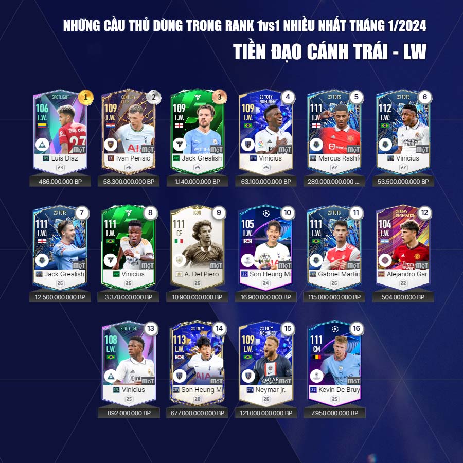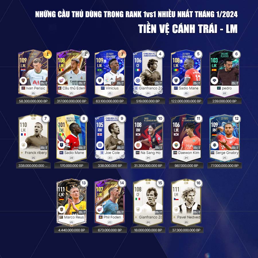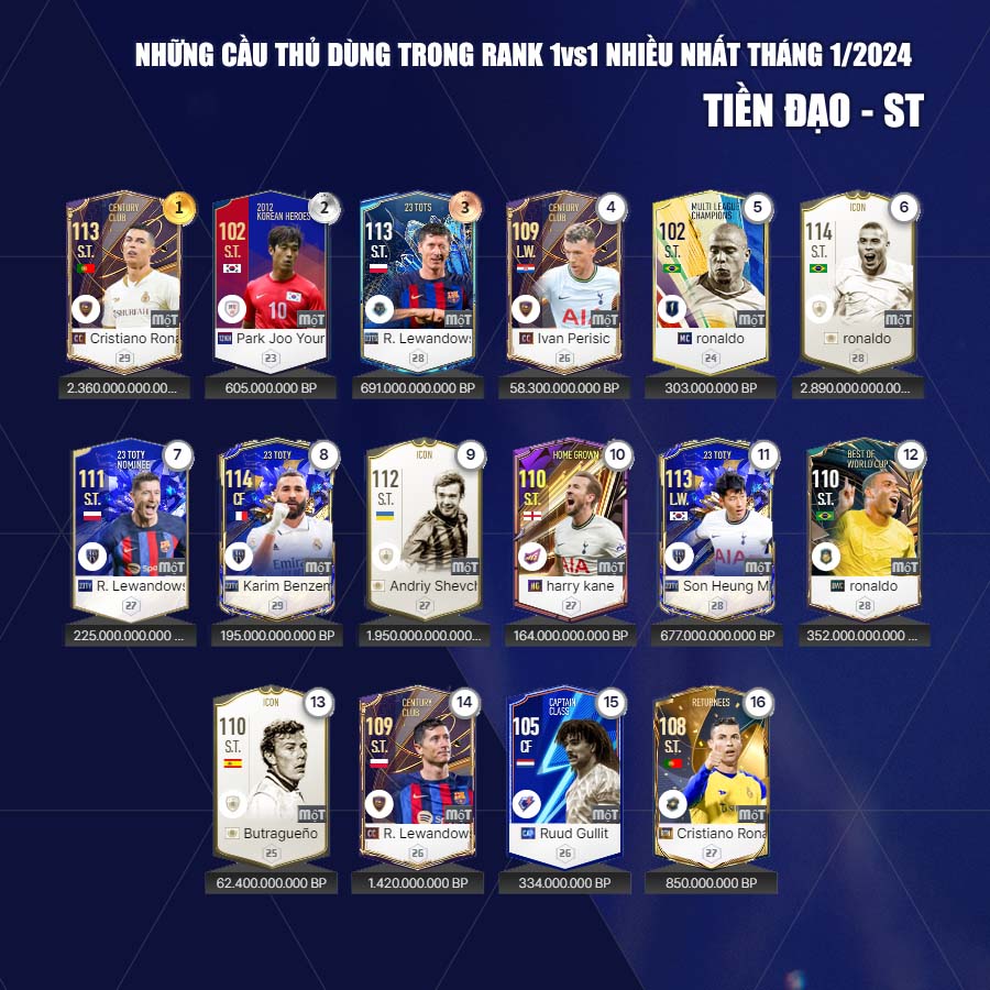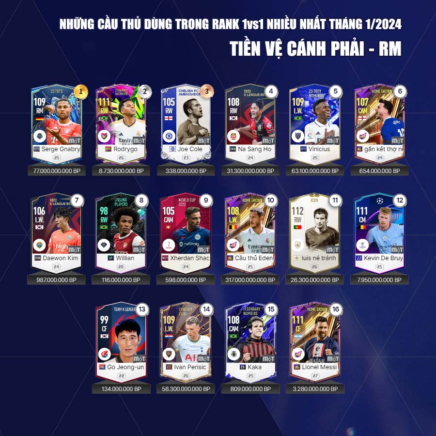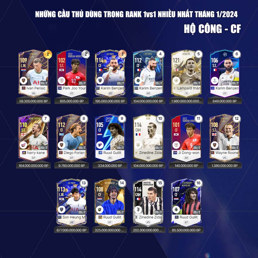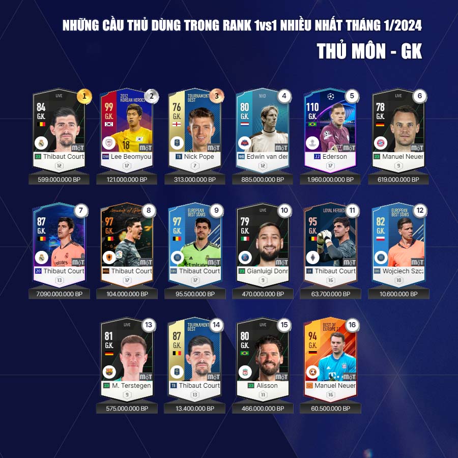 Dưới đây Fo4vn.com xin được gửi tới các bạn đọc danh sách các cầu thủ các cầu thủ được dùng nhiều tháng 1 theo từng vị trí