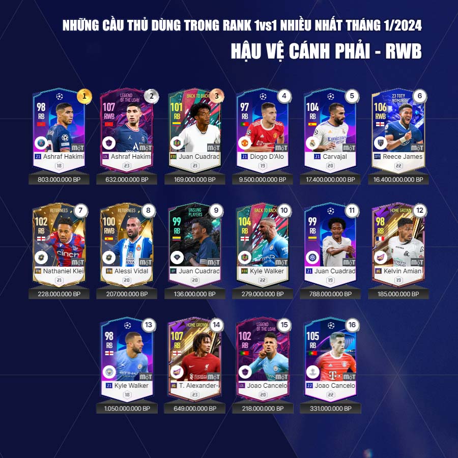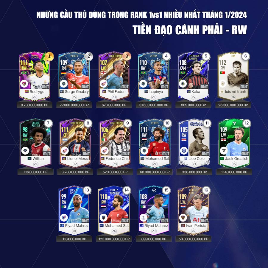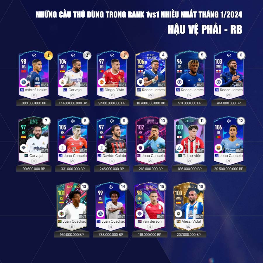 Những cầu thủ được chọn lựa nhiều nhất trong tựa game FC Online có thể không phải là tốt nhất trong game, nhưng có thể là tốt nhất cho từng team color hay lựa chọn mà người chơi sắp xếp trong đội hình, minh chứng rõ nét nhất chính là Rudiger. Hiện trung vệ người Đức không có mùa giải 24TOTY, nhưng người chơi FC Online vẫn sử dụng trung vệ này với tầng suất rất cao.