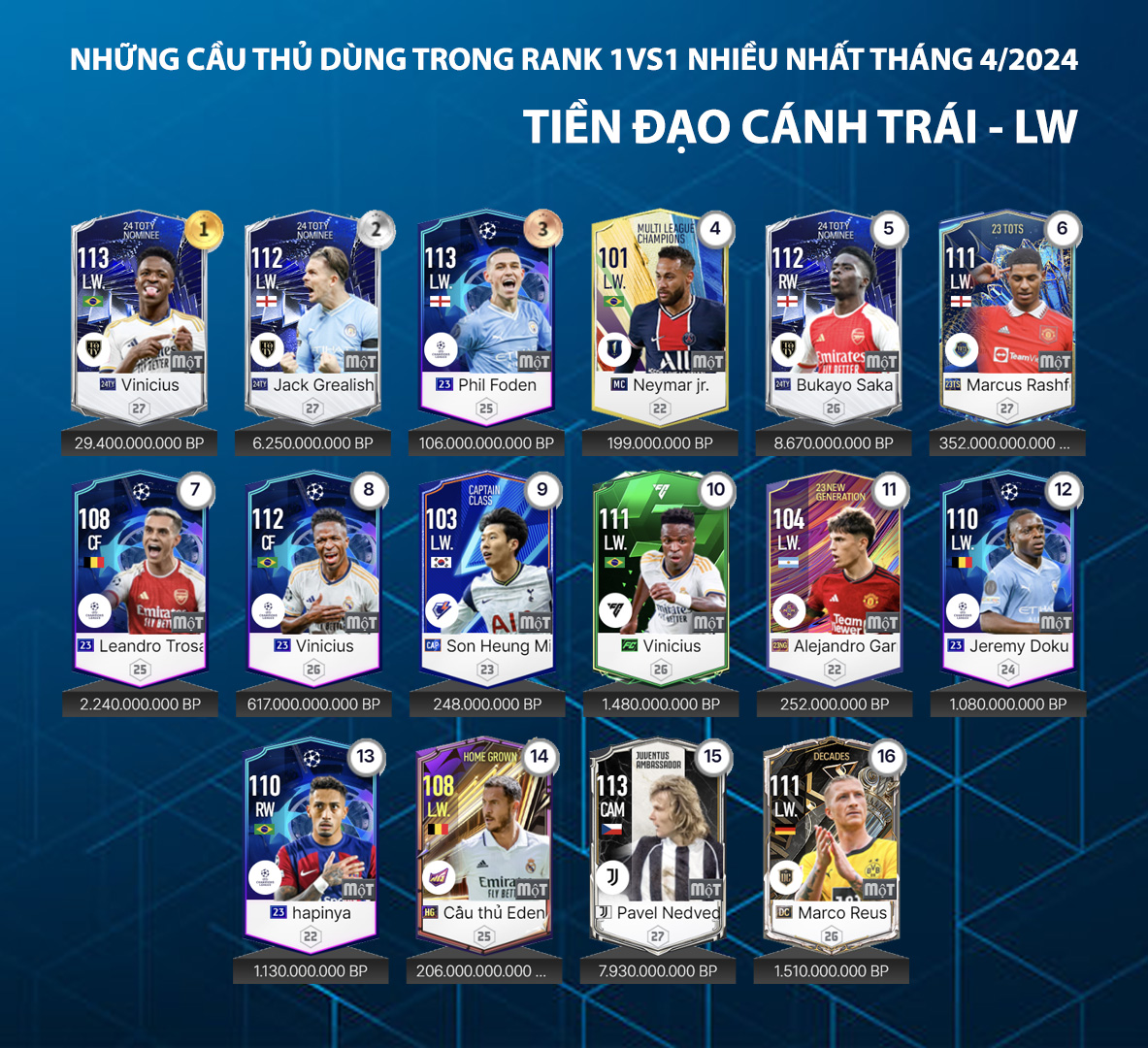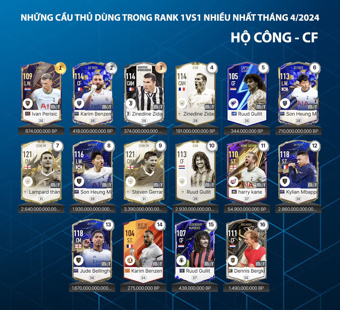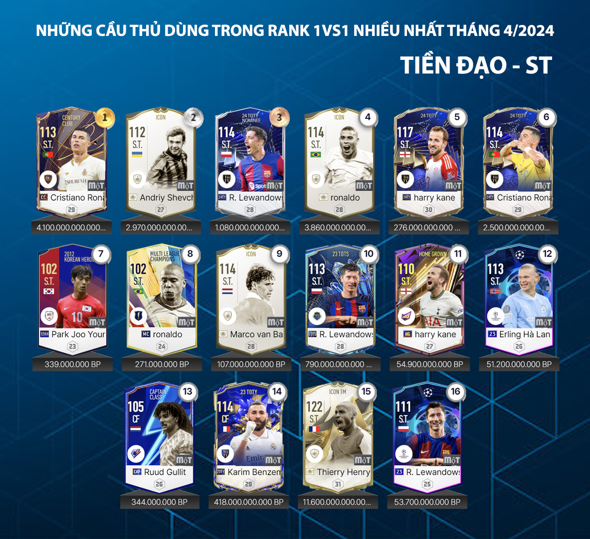 Hôm nay, hãy cùng care1997.com.tw tìm hiểu về những cầu thủ được dùng nhiều nhất và có hiệu quả tốt nhất trong rank xếp hạng FC Online ở vị trí tiền đạo để các HLV có thể tham khảo để đưa ra lựa chọn phù hợp nhất.