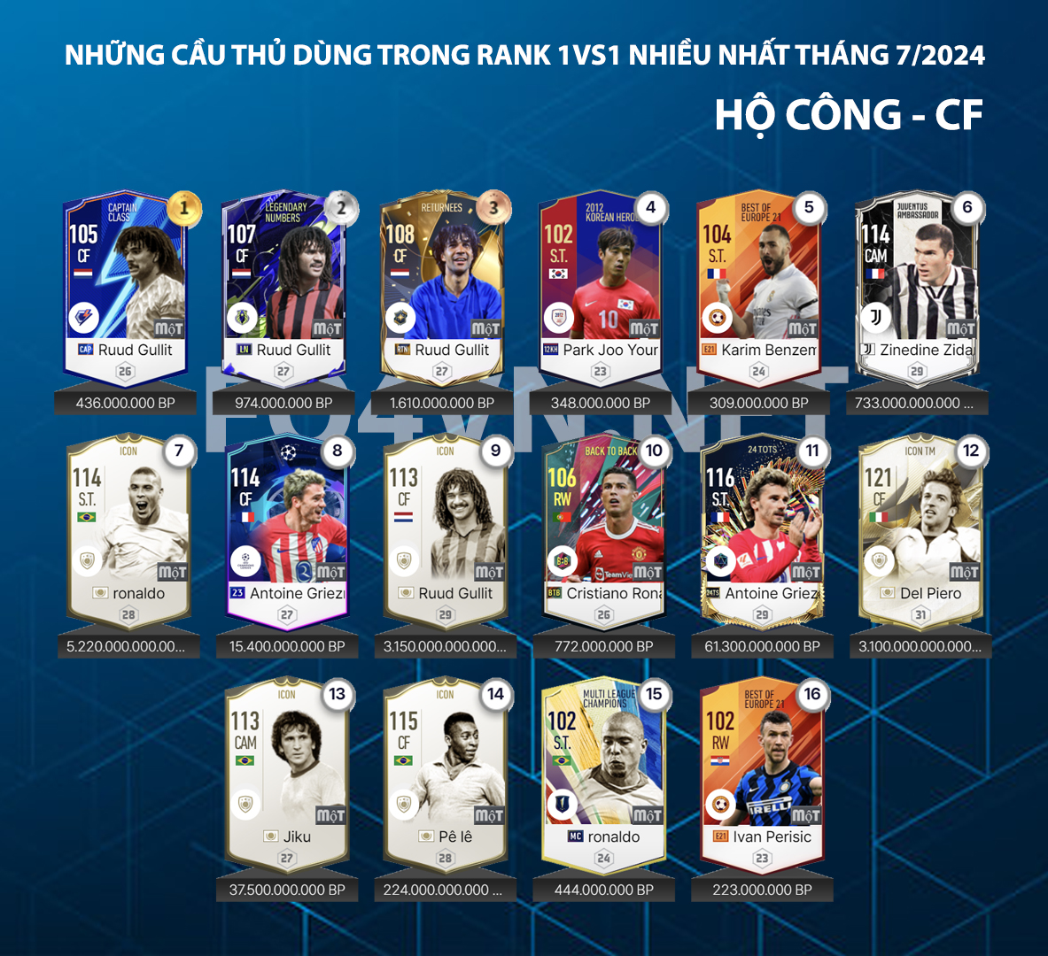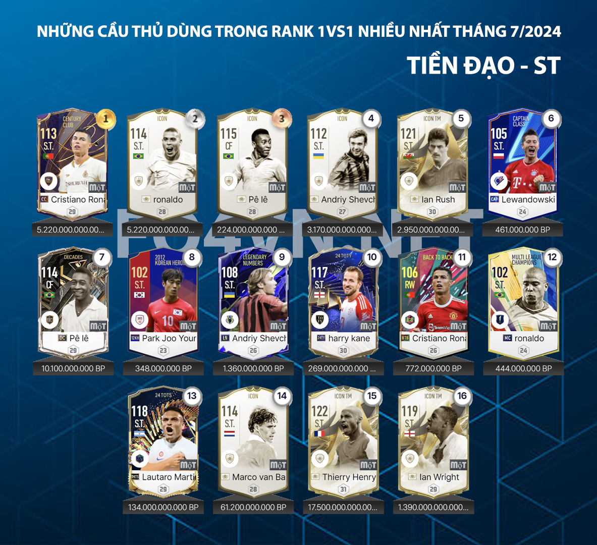 Vậy sau 1 tháng thống kê tại máy chủ xếp hạng, đâu được xem là những cầu thủ đáng dùng và được dùng nhiều cho vị trí tiền đạo, hãy cùng tìm hiểu ở bài viết dưới đây.