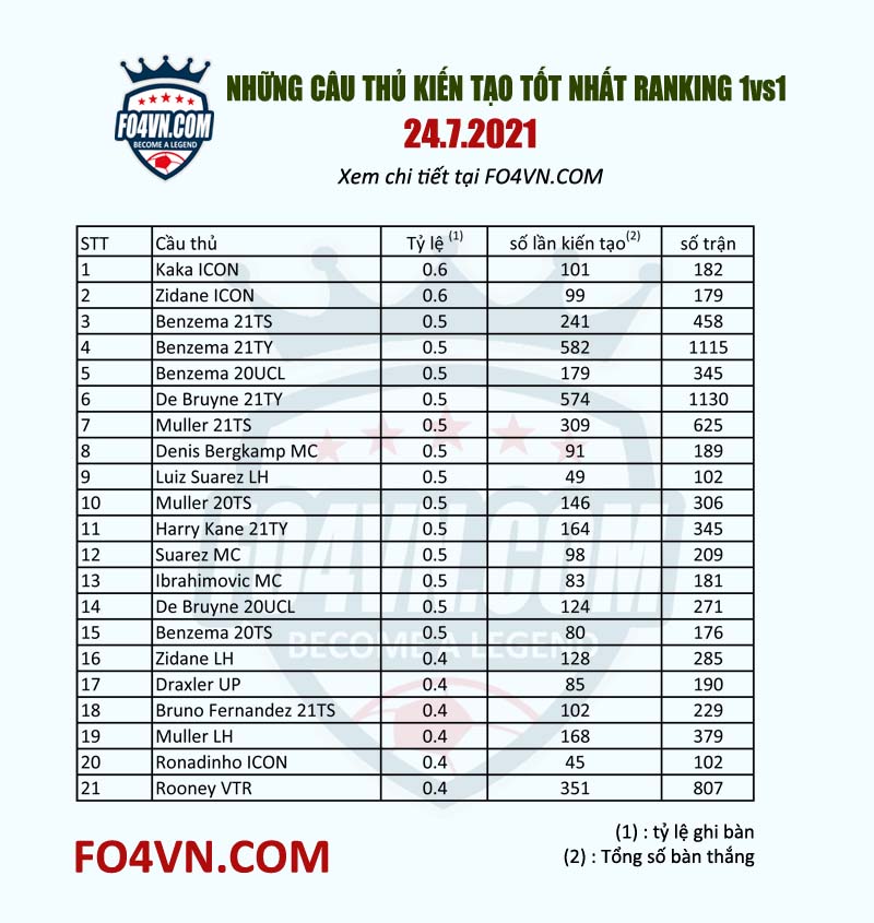 Có người ghi bàn thì phải có người kiến tạo. Việc tìm được một cầu thủ có khả năng phối hợp tốt trên hàng công là một điều rất quan trọng. những cái tên đã quá quen thuộc như Benzema, Gullit đã không còn xa lạ. Khi mà gameplay đã trả cầu thủ về đúng với chỉ số của mình, thì hãy xem liệu những cái tên nào chuyên mớm bóng cho đồng đội tốt nhất.