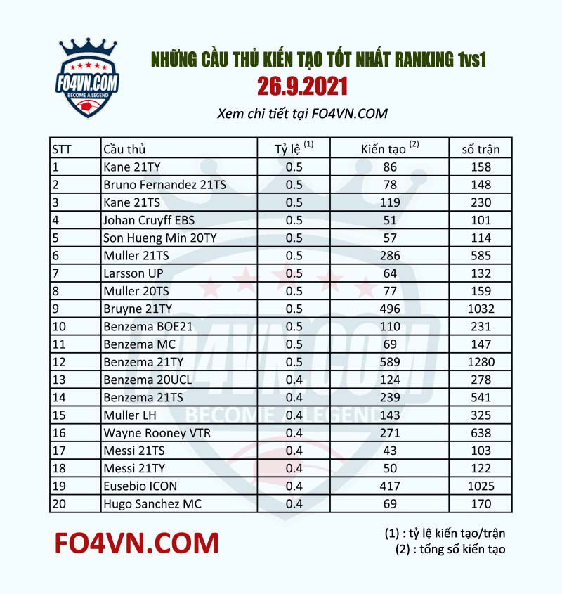Chúng ta cùng đến với những cầu thủ chuyên dọn cỗ dành cho đồng đội. Có thể họ là những tiền đạo hay những tiền vệ tấn công, nhưng đây chính là những chìa khóa thành công dành cho đội của bạn. Hãy cũng xem danh sách dưới đây