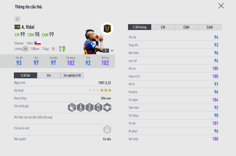 Vidal gần như bị lãng quên tại tựa game FO4 khi mà anh đã qua thời kỳ đỉnh cao. Nếu như ở FO3 mùa giải 14WC của Vidal làm mưa làm gió thì ở FO4 anh chỉ được một vài team color sử dụng như Barca hay Juventus. Thể hình hạn chế lại là trở ngại lớn nhất của Vidal, tuy vậy meta 6.0 đã giúp Vidal trở lại với một máy cày chính hiệu ở tuyến giữa