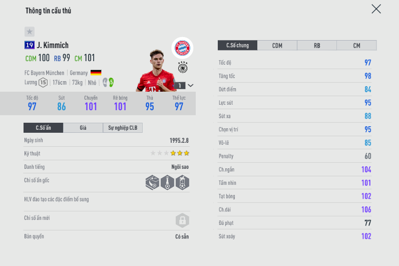 tiền vệ, hậu vệ đa năng Kimmich được coi là người kế thừa Lahn xứng đáng nhất cho đến lúc này. Khi mà anh có thể chơi tốt ở mọi vị trí, với một chỉ số cao 100 cùng mức lương quá ảo, bạn khó có thể đòi hỏi cao hơn nữa