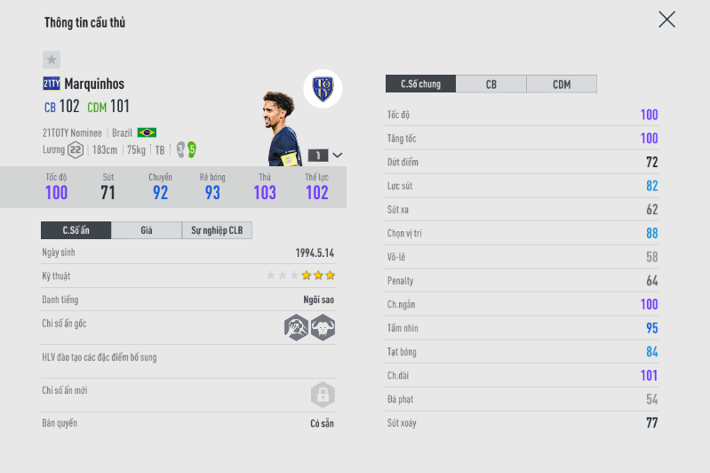 Thêm một hậu vệ người Brazil có tên trong danh sách, so với người đá cặp của mình là Kimpembe thì Marquinhos thiên về mẫu trung vệ quét nhiều hơn. Với khả năng chơi cực toàn diện. Một con bài chất lượng cho việc chống lại sự xâm nhập của các tiền đạo đối phương.