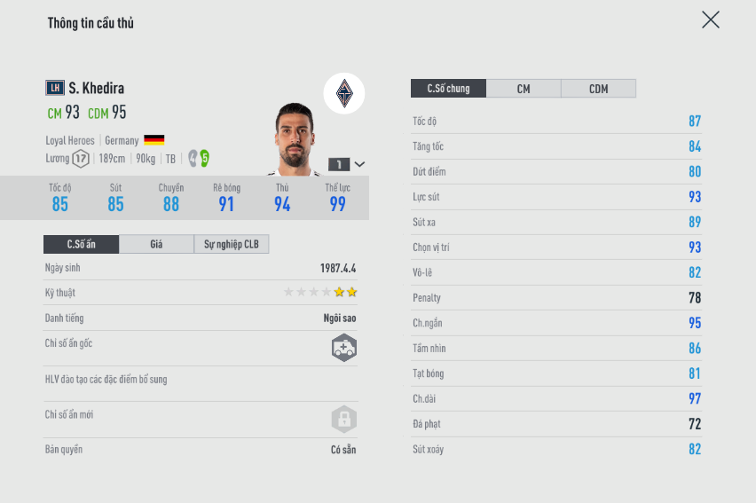 Nếu như không có mùa giải LH có lẽ không mấy người dùng cựu tiền vệ của Real. Nhưng quả thực Khedira LH tốt hơn nhiều so với chỉ số