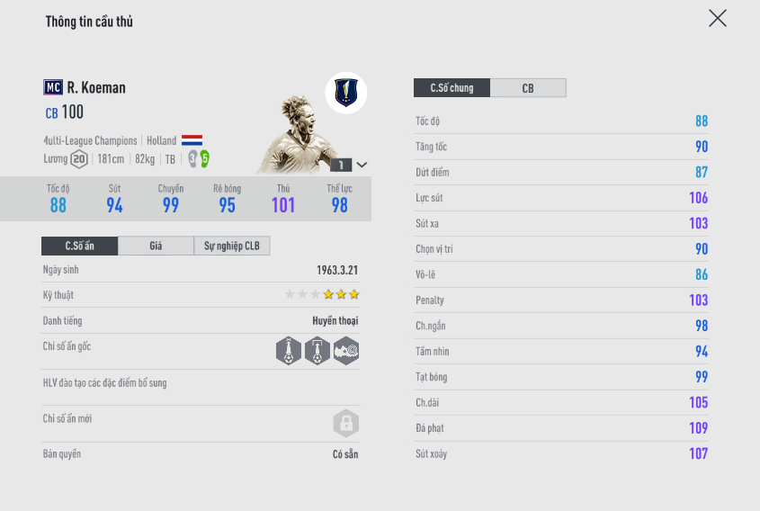 - Mặc dù được xếp vị trí là CB nhưng khi kéo lên CDM mới thể hiện hết độ bá của Koeman