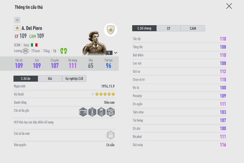 Nếu bạn từng xem Del Piero thi đấu ở ngoài đời, bạn sẽ hiểu tại sao anh lại đứng ở vị trí số 2 trong danh sách này. Ngoài việc từng đứng top các cầu thủ hay nhất ranking xếp hạng trong nhiều tháng. Del Piero còn là một cái tên có những cú sút phạt thành bàn với tỷ lệ cao khi bạn sử dụng huyền thoại người Ý cho những tình huống cố định. Việc của bạn chỉ là căn chuẩn lực, còn lại để anh ấy tự lo