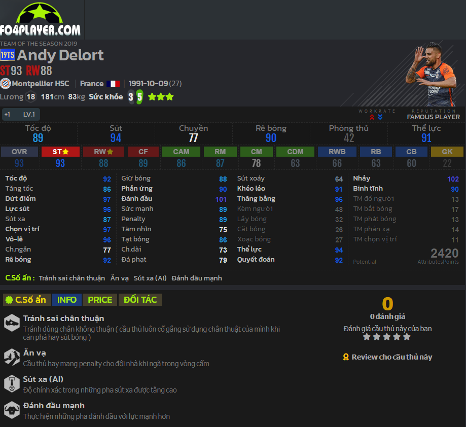 Chiều cao không quá vượt trội mà Delort vượt trội ở khả năng bật nhảy. Cùng với chỉ số ẩn đánh đầu mạnh và chỉ số đánh đầu rất cao. Delort cũng là một con hàng đáng được quan tâm.