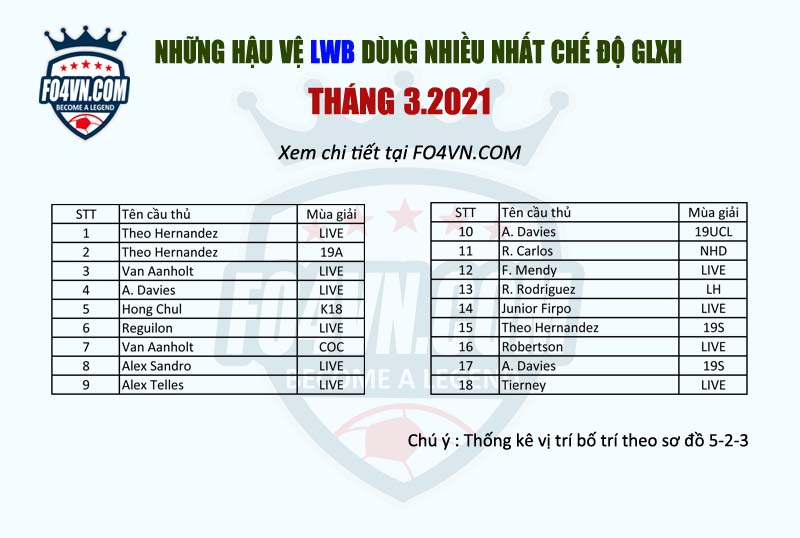 Có tới 3 Theo trong danh sách này, chứng tỏ ở mode GLXH thì cứ có Theo là được. A Davies cũng là cái tên rất đắt giá.