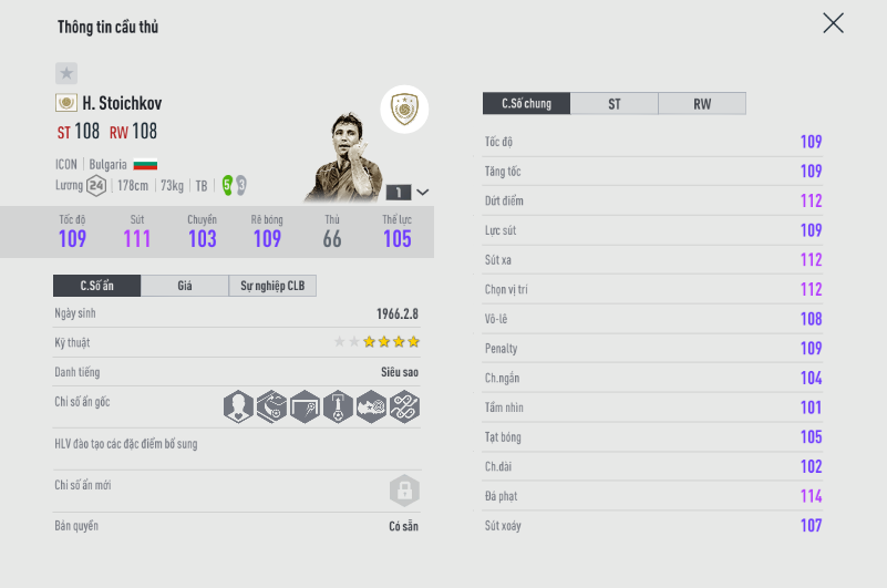 Bỏ qua những lùm xùm bên ngoài thì Stoichkov thực sự là một tài năng trong thế hệ của ông, nhưng vào game thì chẳng thấm vào đâu để cạnh tranh một suất đá chính, Stoichkov giờ đây chỉ xuất hiện trong các buổi liversteam ép thẻ nhiều hơn trân sân đấu rank, Với vai trò một phôi bự
