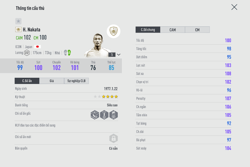 Nếu một ngày đẹp trời bạn mở ra Nakata mà có khoe lên mạng xã hội thì chắc chắn bạn sẽ bị thả haha rất nhiều, vì đen. Mặc dù bạn mở ra ICON đấy nhưng có lẽ nó chẳng là gì, vì đến giờ chắc chỉ có số ít những người chơi đổi gió thích chơi tuyển nhật bản mới chơi Nakata.