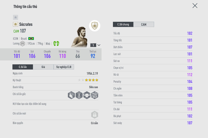 Sở hữu chiều cao khủng, cùng với một bộ chỉ số rất tốt, nhưng Socrates gần như bị lãng quên do ông to nhưng lại yếu xìu, và cũng chẳng buff được team color nào trong game so với thị hiếu của các game thủ. Không chỉ riêng Việt Nam mà điều này còn diễn ra ở các nước khác.