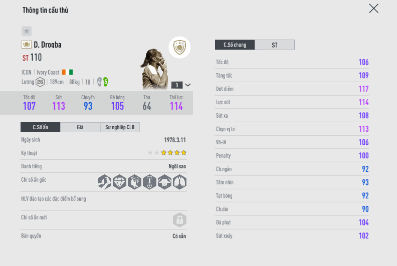 Dân hâm mộ FO4 đã phải chờ rất lâu mới có cái ngày mà voi rừng quay trở lại, có thể việc dùng Drogba tốn lương và không dễ sử dụng như các tiền đạo như Ronaldo... Nhưng cảm xúc được dùng thần tượng của mình bao giờ cũng là sướng nhất. Tỷ lệ ghi bàn của anh là 0.9 bàn/trận