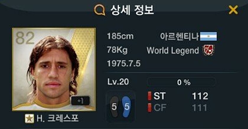 Ở phiên bản FIFA Online 3 thì cựu tiền đạo của Inter Milan là một cái tên có hai chân 5/5 ( ngày đó thì hai chân không quan trọng lắm ). Tuy nhiên sang Fo4 thì anh lại đi thụt lùi khi chỉ có chân 4/5 và sút hơi thiếu tin cậy. Đã có những thông tin rằng Nexon sẽ cho hồi sinh Crespo một lần nữa để anh lại làm mưa làm gió như hồi 2 năm đầu game với mùa giải ICON TM. Lúc đó Crepso sẽ lên hai chân 5/5 và AI chuyền bóng ít nhất cũng bớt "ngáo" hơn.