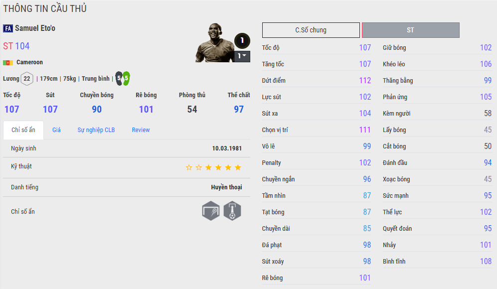 Những tưởng sau lần đánh giá vừa rồi thì Eto ICON sẽ lên hai chân 55 nhưng không vẫn chỉ là 4/5 mà thôi. Và người chơi sẽ phải chờ đến phiên bản cao cấp là ICON TM để có thể sở hữu báo đen uy lực nhất mà chúng ta đã được chứng kiến trong giai đoạn anh thi đấu đỉnh cao.