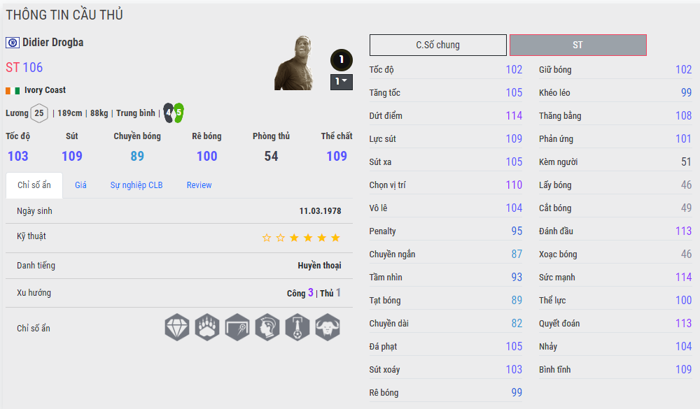 Drogba lên hai chân 5/5 có thể sẽ khó nhưng với Nexon không gì là không thể, chưa kể Drogba luôn là tiền đạo được các HLV FIFA yêu thích nhờ vào thể hình và sức mạnh vượt trội của mình. Việc không có được hai chân 5/5 đã hạn chế rất nhiều đến kỹ năng và khả năng dứ điểm của Drogba.