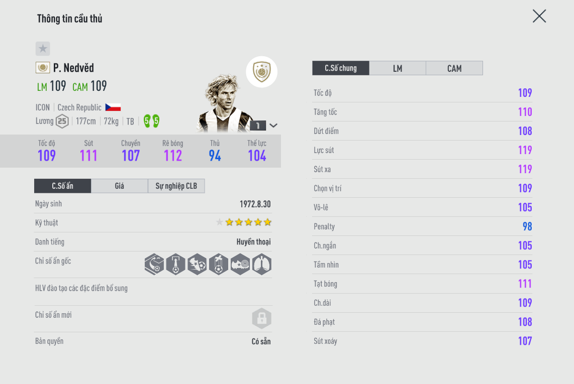 Tiền vệ Juventus trong đầu thế kỷ 21 là một cái tên mà đa phần người chơi đều thừa nhận anh là một tiền vệ hàng đầu trong game, bỏ qua những yếu tố như chế độ GLXH thì trong ranking 1vs1 Nedved quá toàn diện.