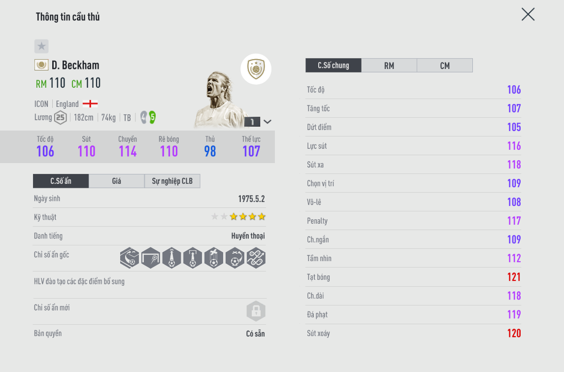 Cầu thủ có lượng fan hâm mộ đông đảo bậc nhấc ở khu vực Đông Nam Á. Tuy nhiên đó chỉ là phần nào góp nên sự phổ biển của Beckham ở Fo4. Về chuyên môn thì Beck chính là một trung những tiền vệ hiệu quả bậc nhất trong game, bởi kỹ năng chuyền và khả năng sút xa không chê vào đâu được của anh.