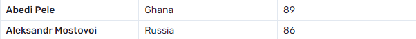 Cái tên được yêu thích nhất chắc chắn sẽ là Wayne Rooney, Van Persie khi lượng fan của hai cầu thủ này là cực đông. Tuy nhiên có một vài trường hợp khá lạ như Cavenaghi ( cực cầu thủ của River Plate ). Hiện danh sách trên vẫn đang có rất nhiều tranh cãi. Những như thường thấy tỷ lệ chính xác gần như đến 80-90%