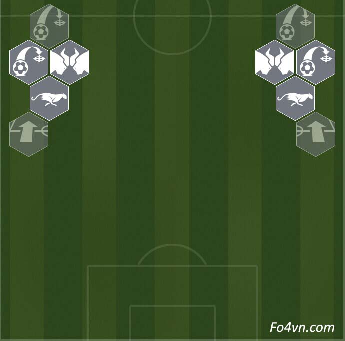 - Tiền đạo mục tiêu ( hình tâm ngắm ) : cải thiện khả năng nhận biết của cầu thủ khi được đặt làm tiền đạo mục tiêu trong cài đặt chiến thuật đơn