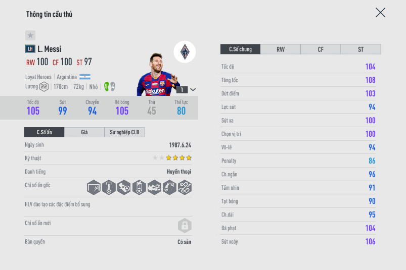 Sẽ là thiếu sót nếu không nhắc đến Messi ở vị trí tiền đạo cánh phải. Cầu thủ PSG vừa nhận quả bóng vàng thứ 7 có lối chơi tương đối đa năng trên hàng công khi vừa có thể đá cánh vừa có thể được đẩy vào đá như một hộ công. Messi sở hữu khả năng rê dắt bóng rất tốt trong game. Không chỉ có thể, khả năng di chuyển, bứt tốc cũng là điểm mạnh của cầu thủ này.