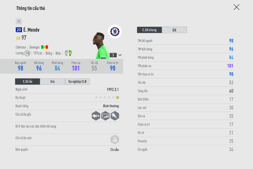 Mendy thời điểm hiện tại đang là một hiện tượng gây rất nhiều ức chế cho người chơi mỗi khi phải đối đàu với cầu thủ này. Khả năng phản xạ tốt, cản phá nhạy bén, sải tay dài và có nhiều những tình huống cứu thua không tưởng. Đây là con hàng đang làm mưa làm gió ở rank xếp hạng cao.