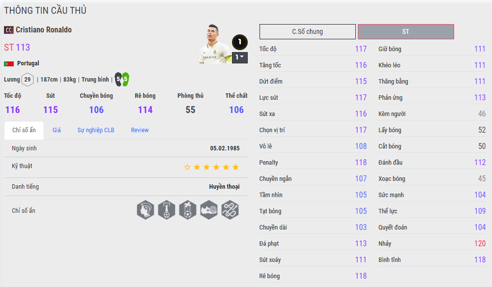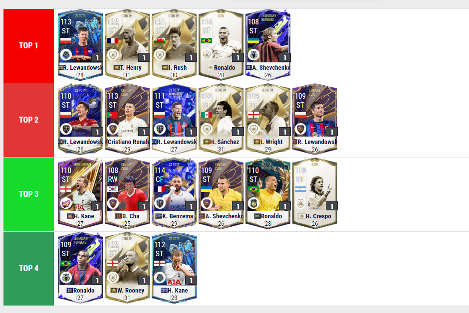 Có hai cái tên Ronaldo có tên trong danh sách này, và các bạn có thấy không ? lần đầu tiên chúng ta thấy Ronaldo ICON đứng vào hàng ngũ top 1, một vài chính sửa nhỏ của Nexon đã đưa người ngoài hành tinh trở thành cây săn bàn nguy hiểm hơn. Nhưng Ronaldo đương đại ( Cr7 ) cũng đã có cho mình một mùa giải Century Club không kém phần thú vị.