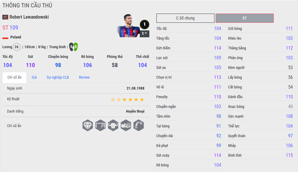 Nếu như ở meta " lỗi " trước đây, cứ tiền đạo nào chạy nhanh là lợi thế thì giờ đây Lewandowski đã trở lại và trở thành một trong những tiền đạo không nằm trong danh sách ICON mà có hiệu suất ghi bàn tốt nhất. Lewandowski mạnh trong các tình huống di chuyển không bóng và đặc biệt là kỹ năng dứt điểm vô cùng đa dạng. Nếu như các mùa TOTS, TOTY đã vào giới hạn thì may mắn thay giờ đây người chơi đã có thêm mùa Century Club để người chơi có thể tiếp cận được nhiều hơn thay vì phải trả một cái giá rất cao cho các mùa giới hạn.